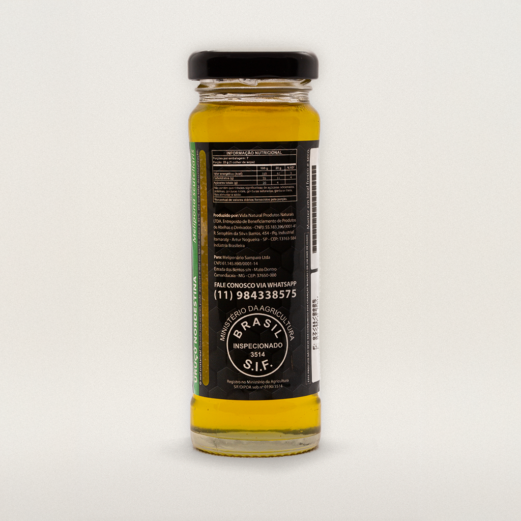 Originária da Mata Atlântica do Nordeste, especialmente Bahia, Pernambuco e Alagoas, a Uruçu Nordestina produz um mel intenso, cítrico e com acidez marcante, muito apreciado por chefes e estudiosos de meliponicultura. A variação de florada traz sabores surpreendentes em cada lote, preservando a autenticidade do bioma.
